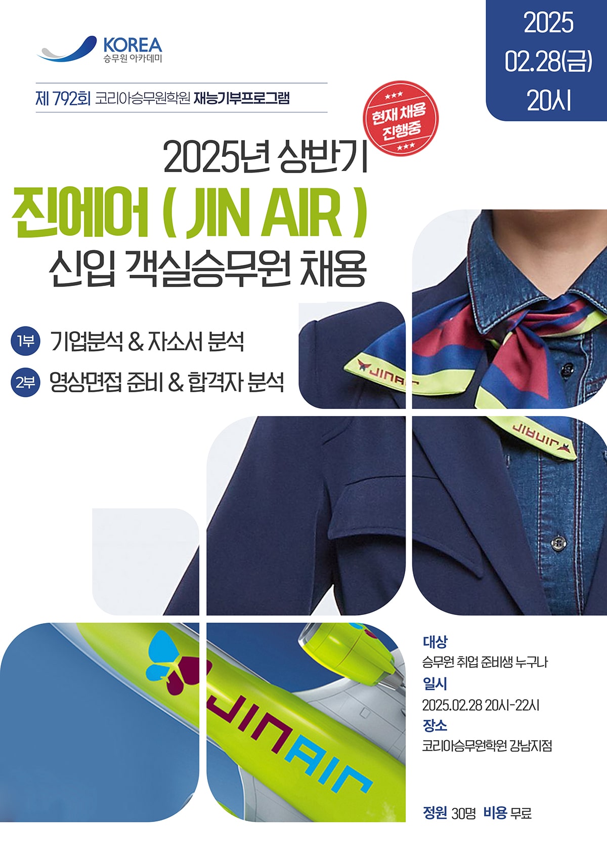 세미나 2025년 상반기 진에어 (JIN AIR) 신입 객실승무원 채용